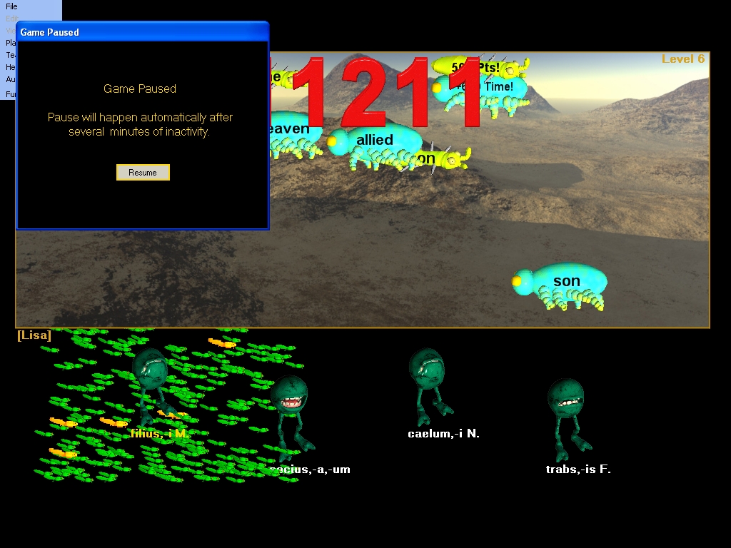 The game will also automatically pause if you go away from the keyboard or stop using the mouse for a short time. This is to prevent your tadpole family from all expiring while you go away from the computer for a little bit. When the game is paused your Time Bonus stays the same and your tadpole count remains unchanged.