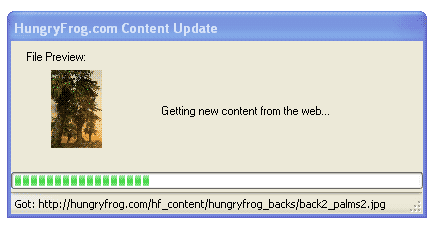Depending upon whether there are content updates available on-line (and whether you have an active internet connection) the software may at this time download additional content such as new graphics or sounds for the game. This is not the same as a version upgrade or update. Checking for version updates and turning on or off the internet connectivity of the software is described in the Advanced Options section of the manual pages. There is no information FROM your computer transmitted over the internet. The program is ONLY loading image files or sound files if new ones are available at the hungryfrog.com web site.